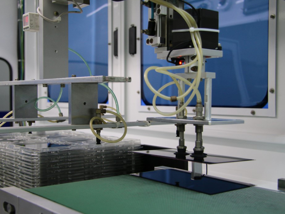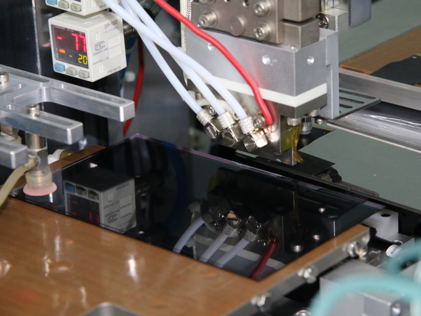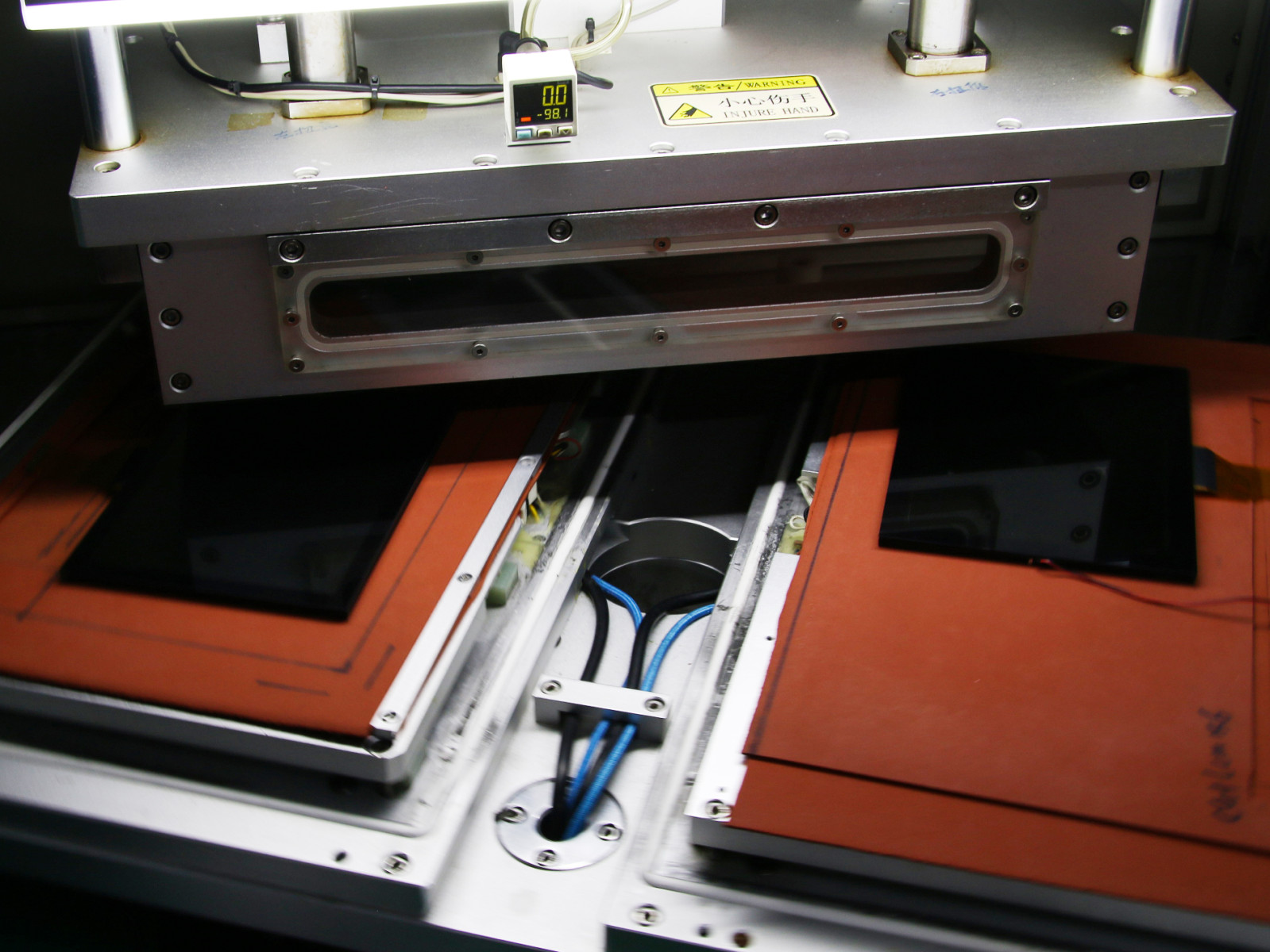 「上流工程から部品実装・テストまで自我完結」 ガラス基板切断・偏光板貼合 FOG貼合・COG実装 各種光学貼合・液晶モジュール組立 ボード実装・テスト等